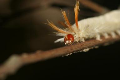 Keywords: caterpillar fuzzy wooly worm white orange macro close-up