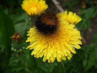 Keywords: caterpillar insects flower a yellow flower dandelion flowers bloom summer nature macro black brown