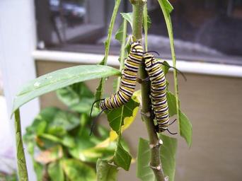 Keywords: caterpillar monarch butterfly milkweed plant outside nature scenery growth leaves greenery flora close-up outdoor green