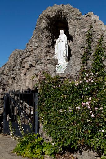 Keywords: cathedral of san carlos borromeo grotto faith religion religious christianity catholic flowers plants rock