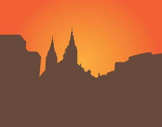 Keywords: catholic church silhouette sunset urban city twilight