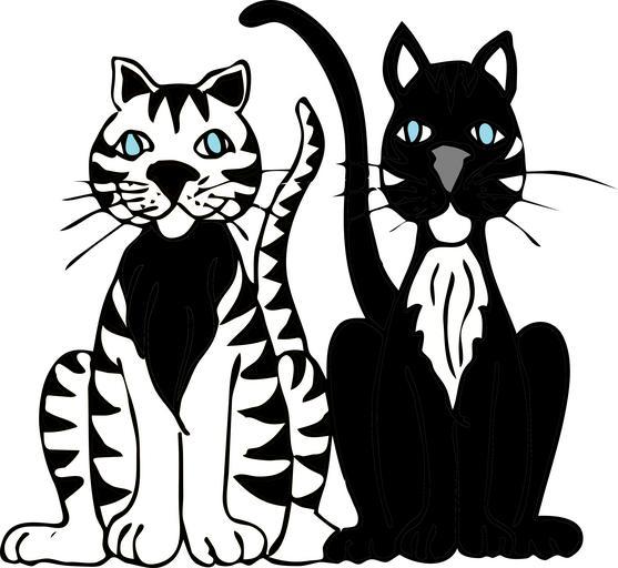 Keywords: cats kitty cat pet animals black white blue eyes pair duo set friends feline best friends pets drawing happy cartoon