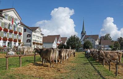 Keywords: cattle show customs appenzellerland appenzell stone village townhouses cattle had cows award tradition agriculture livestock ruminant cow switzerland
