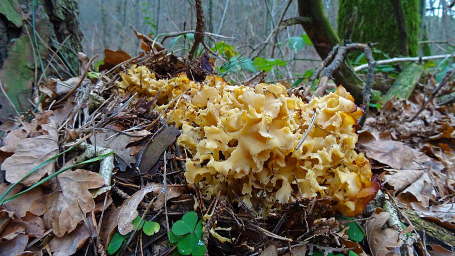 Keywords: cauliflower mushroom mushroom edible forest forest floor close leaves branches aesthetic klee conifer