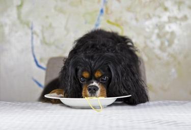 Keywords: cavalier king charles spaniel dog purebred dog three coloured black landscape format funny spaniel king charles portrait cavalier king charles spaniel noodle spaghetti small dog view fur