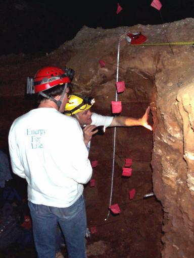MAKE A MEME View Large Image Paleontologists collecting bat bones from guano produced by an extinct species of bat. (NPS Photo by Dale Pate) nps paleontology cave bats caver