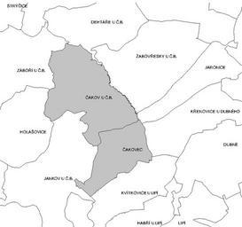 Keywords: CB Čakov.png cs Katastrální členění Čakova Own Jan Dudík Čakov České Budějovice District Cadastral maps of the České Budějovice District