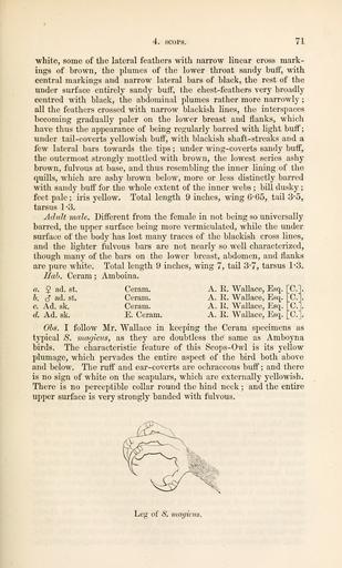 | Keywords: CBBM02 071.png Scops magicus <small> S Müll </small> Otus magicus <small> S Müller 1841 </small> en Moluccan Scops-owl left foot from lateral Catalogue of the birds in the British Museum http //www archive org/details/catalogueofbirds02brit Vol 2 Page 71 1875 creator John Gerrard Keulemans Richard Bowdler Sharpe text PD-old-100 CBBM02 Otus magicus Strigidae feet |