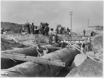 | Keywords: CCC Camp BR-24 Boise Project, Marsing, Idaho, Photo of crew placing concrete collar connecting old steel pipe with... - NARA - 293517.tif Scope and content General notes 293517 Local identifier Department of the Interior Bureau of Reclamation Civilian Conservation Corps Division 1937 - 1942 NARA's Rocky Mountain Region Denver NRGA Building 48 Denver Federal Center West 6th Avenue and Kipling Street Denver CO 80225-0307 1941-03-14 Record group Record Group 115 Records of the Bureau of Reclamation 1889 - 2008 Record group ARC 444 Civilian Conservation Corps Photographs and Related Correspondence compiled 1939 - 1941 Series ARC 293494 File unit File unit ARC Variant control numbers NAIL Control Number NRG-115-CCCPHOWDC31-BR243011695 yes Other versions <gallery> File CCC_Camp_BR-24_Boise_Project _Marsing _Idaho _Photo_of_crew_placing_concrete_collar_connecting_old_steel_pipe_with _-_NARA_-_293517 tif tif File CCC_Camp_BR-24_Boise_Project _Marsing _Idaho _Photo_of_crew_placing_concrete_collar_connecting_old_steel_pipe_with _-_NARA_-_293517 jpg jpg </gallery> NARA-cooperation PD-USGov Civilian Conservation Corps camps Water pipelines in the United States NARA TIF images with categorized JPGs |