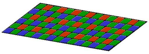 Keywords: CCD Bayer Filter.png Filtro de Bayer utilizado en numerosas cámaras digitales Color cells layout of a Bayer filter for CCD sensor Personal drawing 2005-11-01 own assumed Lozère Charge-coupled devices Bayer filter