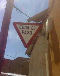 Keywords: Ceda el paso.jpg en Yield-Give Way Spanish Sign Ceda el Paso es Señal de Ceda el Paso own Chiquicalce 2008-08-14 Road signs in Spain Yield signs with text