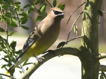 | Keywords: Cedar Waxwing-27527-2.jpg A Cedar Waxwing Bombycilla cedrorum perched in the branches of a Weeping Holly tree <br>Photo taken with a Panasonic Lumix DMC-FZ50 in Johnston County North Carolina USA http //www kenthomas us KenThomas us<br> personal website of photographer 2007-02-26 12 45-05 <sup>ISO 8601</sup> Ken Thomas This image is released to the public domain and therefore no permission or credit is required <br>Comments and/or feedback however are always welcome See my user page for contact info Bombycilla cedrorum Taken with Panasonic Lumix DMC-FZ50 |