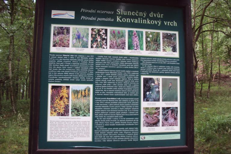 | Keywords: Cedule Sluneční 1.jpg cs Tabule označující rezervaci Slunečný dvůr i památku Konvalinkový vrch na Českolipsku own Zákupák 2011-06-12 50 36 19 331 N 14 37 1 314 E region CZ Slunečný dvůr Konvalinkový vrch Information boards in Česká Lípa District |