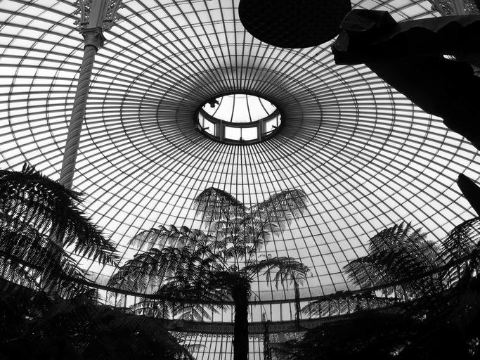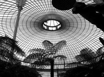 Keywords: ceiling botanics building decoration round glass glazed black white glasshouse greenhouse ferns outlines structure foliage park