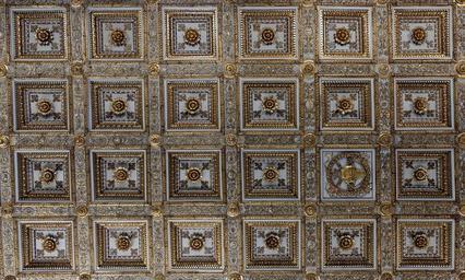 | Keywords: Ceiling SM Maggiore.jpg Caisson ceiling in the central nave of Basilica di Santa Maria Maggiore in Rome by Giuliano da Sangallo 16th century The ceiling was gilt with the first gold from Americas Plafond à caissons de la nef centrale de la basilique Sainte-Marie-Majeure à Rome Œuvre de Giuliano da Sangallo XVIe siècle Le plafond fut doré avec le premier or venu des Amériques own own picture Jastrow 2006 Public Domain Santa Maria Maggiore Rome - ceiling | ||||