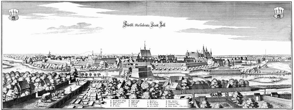 Keywords: Celle-1654-Merian.jpg Source Matthäus Merian Cityview Buildings of the Principality of Lüneburg History of Celle aerial view 1650s Engravings of Topographia Braunschweig Lüneburg Celle Stadtbefestigung Celle Conrad Buno