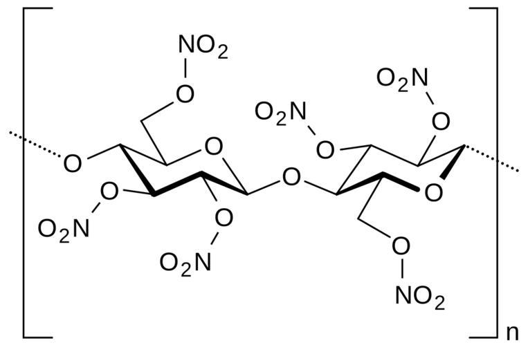 Keywords: Cellulose nitrate.svg Chemical structure of cellulose nitrate nitrocellulose own work drawn with BKchem 2007-08-31 Dschanz public domain Cellulose derivatives Organonitrates Nitrocellulose