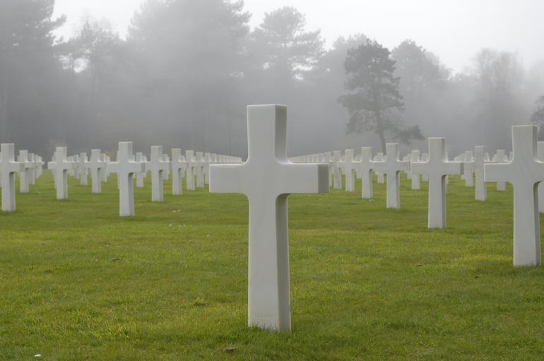 Keywords: cemetery american cemetery landing d day commemoration cross normandy tribute falls american war battle omaha beach army military second world war fog
