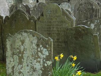 Keywords: cemetery england tombstone roof atmosphere overgrown