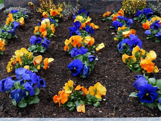 Keywords: cemetery grave old cemetery pansy viola wittrockiana flower plants violet viola violet plant violaceae blue orange