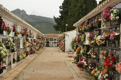 Keywords: cemetery grave wall all souls ' day spain flowers commemorate