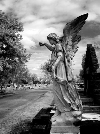 Keywords: cemetery magnolia cemetery mobile alabama usa united states america north america magnolia infra red sw black and white tree silent harmony away grave mourning tombstone resting place angel transience death fig