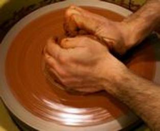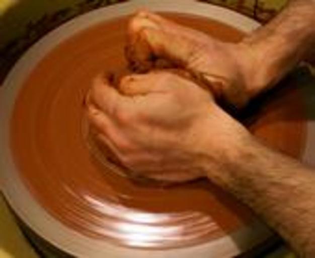 Keywords: Centering.jpg en An artist centering clay on the potter's wheel own Mcnultyc1 Potter's wheels Centering