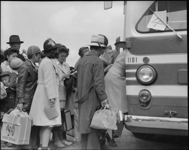 | Keywords: Centerville, California. The bus has just arrived and these farm families of Japanese ancestry are . . . - NARA - 537587.jpg Scope and content The full caption for this photograph reads Centerville California The bus has just arrived and these farm families of Japanese ancestry are being kept intact enroute to the Assembly center General notes 537587 Local identifier 210-G-C240 Department of the Interior War Relocation Authority 02/16/1944 - 06/30/1946 NARA-Author Lange Dorothea 1895-1965 Photographer 1372774 <br /> Still Picture Records Section Special Media Archives Services Division NWCS-S National Archives at College Park 8601 Adelphi Road College Park MD 20740-6001 1942-05-09 Record group Record Group 210 Records of the War Relocation Authority 1941 - 1989 Record group ARC 537 Central Photographic File of the War Relocation Authority compiled 1942 - 1945 Series ARC 536000 File unit File unit ARC Variant control numbers NAIL Control Number NWDNS-210-G-C240 Other versions <gallery> File Centerville _California _The_bus_has_just_arrived_and_these_farm_families_of_Japanese_ancestry_are_ _ _ _-_NARA_-_537587 tif tif File Centerville _California _The_bus_has_just_arrived_and_these_farm_families_of_Japanese_ancestry_are_ _ _ _-_NARA_-_537587 jpg jpg </gallery> NARA-cooperation PD-USGov Dorothea Lange Japanese American internment processing in Centerville Alameda County California |