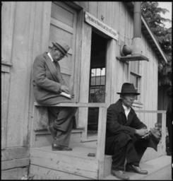 | Keywords: Centerville, California. Evacuees of Japanese ancestry waiting in front of the Japanese American Ci . . . - NARA - 537565.jpg Scope and content The full caption for this photograph reads Centerville California Evacuees of Japanese ancestry waiting in front of the Japanese American Citizens League quarters for evacuation buses which will take them to the Tanforan Assembly center The man in the gray hat is reading a religious book written in Japanese General notes 537565 Local identifier 210-G-C218 Department of the Interior War Relocation Authority 02/16/1944 - 06/30/1946 NARA-Author Lange Dorothea 1895-1965 Photographer 1372774 <br /> Still Picture Records Section Special Media Archives Services Division NWCS-S National Archives at College Park 8601 Adelphi Road College Park MD 20740-6001 1942-05-09 Record group Record Group 210 Records of the War Relocation Authority 1941 - 1989 Record group ARC 537 Central Photographic File of the War Relocation Authority compiled 1942 - 1945 Series ARC 536000 File unit File unit ARC Variant control numbers NAIL Control Number NWDNS-210-G-C218 Other versions <gallery> File Centerville _California _Evacuees_of_Japanese_ancestry_waiting_in_front_of_the_Japanese_American_Ci_ _ _ _-_NARA_-_537565 tif tif File Centerville _California _Evacuees_of_Japanese_ancestry_waiting_in_front_of_the_Japanese_American_Ci_ _ _ _-_NARA_-_537565 jpg jpg </gallery> NARA-cooperation PD-USGov Japanese American internment processing in Centerville Alameda County California Porches in California Dorothea Lange Black and white photographs of men Japanese American Citizens League |