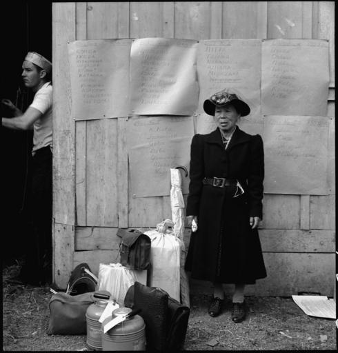 | Keywords: Centerville, California. This evacuee stands by her baggage as she waits for evacuation bus. Evacu . . . - NARA - 537588.jpg Scope and content The full caption for this photograph reads Centerville California This evacuee stands by her baggage as she waits for evacuation bus Evacuees of Japanese ancestry will be housed in War Relocation Authority centers for the duration General notes 537588 Local identifier 210-G-C241 Department of the Interior War Relocation Authority 02/16/1944 - 06/30/1946 NARA-Author Lange Dorothea 1895-1965 Photographer 1372774 <br /> Still Picture Records Section Special Media Archives Services Division NWCS-S National Archives at College Park 8601 Adelphi Road College Park MD 20740-6001 1942-05-09 Record group Record Group 210 Records of the War Relocation Authority 1941 - 1989 Record group ARC 537 Central Photographic File of the War Relocation Authority compiled 1942 - 1945 Series ARC 536000 File unit File unit ARC Variant control numbers NAIL Control Number NWDNS-210-G-C241 Other versions <gallery> File Centerville _California _This_evacuee_stands_by_her_baggage_as_she_waits_for_evacuation_bus _Evacu_ _ _ _-_NARA_-_537588 tif tif File Centerville _California _This_evacuee_stands_by_her_baggage_as_she_waits_for_evacuation_bus _Evacu_ _ _ _-_NARA_-_537588 jpg jpg </gallery> NARA-cooperation PD-USGov Dorothea Lange Japanese American internment processing in Centerville Alameda County California |