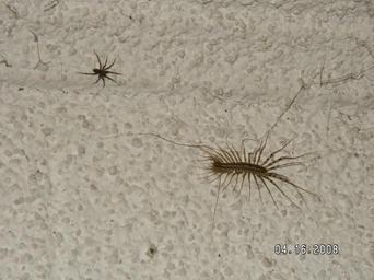 Keywords: Centipede Stalk.JPG en A House Centipede stalking its prey in a basement own Lightnen 2008-04-16 Own work public domain Centipede stalking spider Scutigera coleoptrata