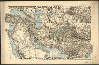 | Keywords: Central Asia- Afghanistan and Her Relation to British and Russian Territories WDL11751.png Artwork ru Цент альная Азия Афганистан и его отношение к б итанским и оссийским те ито иям fr Asie centrale l'Afghanistan et ses relations avec les territoires britanniques et russes en Central Asia Afghanistan and Her Relation to British and Russian Territories zh 中亚:阿富汗及其与英国和俄国领 的关系 pt Ásia Central Afeganistão e suas relações com os territórios britânicos e russos ar آسيا الوسطى أفغانستان وعلاقتها بالمناطق البريطانية والروسية ru а этой ка те созданной в 1885 г п едставлена те ито ия Азии от восточного побе ежья С едиземного мо я до Западного Китая и Индийского субконтинента а в езке в п авом ве хнем углу показано положение егиона на общей ка те Азии Ев опы и Аф ики В цент е ка ты находится Афганистан на те ито ии кото ого в амках так называемой Большой иг ы Российская и Б итанская импе ии на п отяжении почти всего XIX века сопе ничали за установление влияния в егионе Б итанцы боялись что усские аннекси овавшие в 1860-х и 1870-х гг значительные части Цент альной Азии будут использовать Афганистан как базу с кото ой они смогут уг ожать Б итанской Индии Цент альный егион А авии описывается как беск айняя пустыня от екки до Омана асштаб на ка те указан в двух единицах изме ения английских статутных милях и усских <em>ве стах</em> Поскольку ка та п едназначалась для аме иканцев внизу в цент е изоб ажены аме иканские штаты Индиана и Огайо Они выполнены в том же масштабе для с авнения асстояний в егионе с асстояниями на те ито ии США Эта ка та была выпущена компанией G W C B Colton Company кото ой владели Джо дж Вулво т Колтон 1827 1901 гг и Ча льз Б Колтон 1832 1916 гг сыновья Джозефа Хатчинса Колтона 1800 1893 гг основателя новато ской ка тог афической фи мы J H Colton Company <br>А авийский залив; А авийский полуост ов; Балканский полуост ов; Гималайские го ы; Пе сидский залив fr Cette carte de 1885 montre les territoires de l'Asie s'étendant du littoral est de la Méditerranée à l'ouest de la Chine et au sous-continent indien Un cartouche situé dans la partie supérieure droite représente la région dans un contexte plus large comprenant l'Asie l'Europe et l'Afrique L'un des points centraux de la carte est l'Afghanistan où se déroula le « grand jeu » nom désignant la lutte d'influence entre l'Empire russe et l'Empire britannique pendant la majeure partie du XIX<sup>e</sup> siècle Les Britanniques craignaient que les Russes qui avaient annexé de grandes parties de l'Asie centrale dans les années 1860 et 1870 utilisent l'Afghanistan comme base d'où ils pourraient menacer l'Inde britannique La région centrale de l'Arabie est décrite comme un « désert ininterrompu de La Mecque jusqu'au Sultanat d'Oman » La carte possède deux échelles de distance l'une en milles terrestres anglais et l'autre en <em>verstes</em> russes Visant un public américain elle montre également en bas au centre les États de l'Indiana et de l'Ohio représentés à l'échelle pour comparer les distances de la région avec celles des États-Unis Cette carte fut émise par la G W C B Colton Company qui appartenait à George Woolworth Colton 1827 1901 et Charles B Colton 1832 1916 fils de Joseph Hutchins Colton 1800 1893 fondateur de la société pionnière d'édition de cartes J H Colton Company <br>Golfe Arabique; Péninsule arabique; Péninsule balkanique; Chaîne himalayenne; Golfe Persique en This 1885 map shows Asia from the eastern littoral of the Mediterranean to western China and the Indian subcontinent An inset in the upper right depicts the region in the broader context of Asia Europe and Africa A focal point of the map is Afghanistan where in what was called the Great Game the Russian and British empires competed for influence throughout most of the 19th century The British feared that the Russians who annexed large parts of Central Asia in the 1860s and 1870s would use Afghanistan as a base from which to threaten British India The central region of Arabia is described as uninterrupted desert from Mecca to Oman The map has two distance scales one in English statute miles and another in Russian <em>versts</em> Intended for American audiences it also shows at the bottom center the U S states of Indiana and Ohio which are drawn to scale as a way of comparing distances in the region with those in the United States The map was issued by the G W C B Colton Company which was owned by George Woolworth Colton 1827 1901 and Charles B Colton 1832 1916 the sons of Joseph Hutchins Colton 1800 93 founder of the pioneering map publishing firm J H Colton Company <br>Arabian Gulf; Arabian Peninsula; Balkan Peninsula; Himalaya Mountains; Persian Gulf zh 这幅 1885 年的 图展示了自 中海 岸至中国西部和印度次大陆的亚洲版图 右