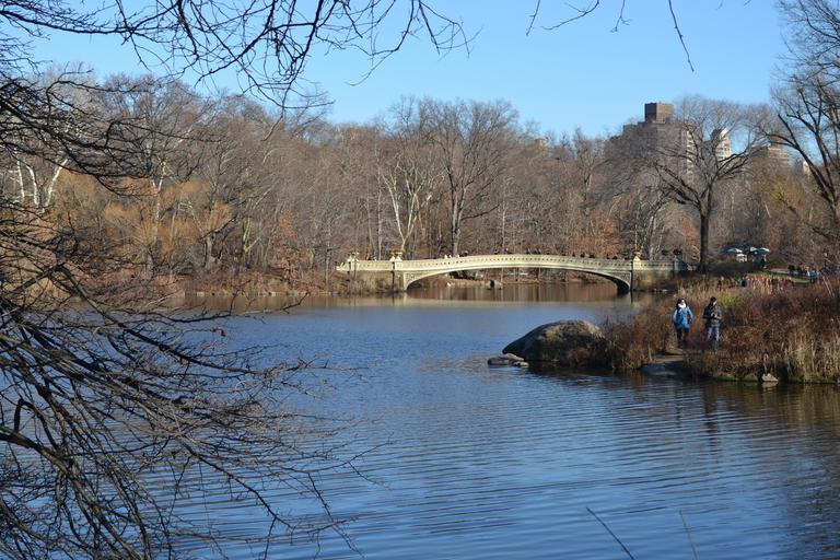 Keywords: central park park winter lake bridge outdoors city central manhattan nature
