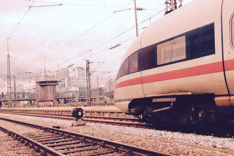 Keywords: central station railway railway station express train rail traffic transport wagon traffic signal box munich train