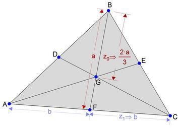 | Keywords: Centroid of a Triangle.png en Point G is the centroid of triangle ABC and points E F and G are midpoints of sides AB BC and CA respectively The rule that the centroid is 2/3 of the way along each bisecting line is indicated on segment BF own Ssgxnh 2010-08-06 Created using the symbolic geometry program Geometry Expressions Triangle theorems Median geometry Geometric shapes |