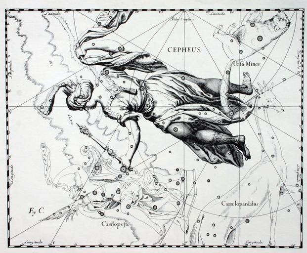 Keywords: Cepheus Hevelius 2.jpg en The en Cepheus constellation from Uranographia by Johannes Hevelius The view is mirrored following the tradition of celestial globes showing the celestial sphere in a view from outside Лист C Цефей Атласа звёздного неба Яна Гевелия п едставляющего собой п иложение к его книге «Prodromus Astronomiæ» опубликованной в 1690 году в Гданьске Изоб ажение зе кальное обычное для небесных глобусов показывающее вид небесной сфе ы «извне» http //contentdm lindahall org/cdm4/document php CISOROOT /star_atlas CISOPTR 479 Atlas Coelestis Johannes Hevelius drew the constellation in Uranographia his celestial catalogue in 1690 1690 Johannes Hevelius PD-old-100 Uranographia by Johannes Hevelius Firmamentum Sobiescianum sive uranographia Cepheus constellation Cassiopeia constellation Milky Way in art Cassiopeia mythology |