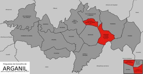 | Keywords: Cerdeira e Moura da Serra (Arganil) localização.svg pt Localização da União das Freguesias de Cerdeira e Moura da Serra no concelho de Arganil Portugal en Location of the Union of Civil Parishes of Cerdeira and Moura da Serra within the municipality of Arganil Portugal 2014-05-10 05 02 55 File Arganil freguesias 2013 svg Gazilion cc-zero Uploaded with UploadWizard Arganil Exclaves and enclaves in Portugal SVG maps of freguesias in Portugal | ||||