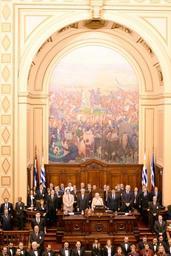 | Keywords: architecture hall building auditorium indoor La delegación oficial de los Estados Unidos representó al Presidente Barack Obama en la Ceremonia de Transmisión del Mando Presidencial al Presidente electo Dr. Tabaré Vázquez, tanto en el evento que tuvo lugar en el Palacio Legislativo de Montevideo (juramento del presidente electo y del vice presidente electo) como en la Ceremonia de traspaso de banda presidencial y asunción del nuevo gabinete de Gobierno, que tuvo lugar en la Plaza independencia de Montevideo. [U.S. Embassy photos: Pablo Castro] La delegación oficial de los Estados Unidos representó al Presidente Barack Obama en la Ceremonia de Transmisión del Mando Presidencial al Presidente electo Dr. Tabaré Vázquez, tanto en el evento que tuvo lugar en el Palacio Legislativo de Montevideo (juramento del presidente electo y del vice presidente electo) como en la Ceremonia de traspaso de banda presidencial y asunción del nuevo gabinete de Gobierno, que tuvo lugar en la Plaza independencia de Montevideo. [U.S. Embassy photos: Pablo Castro] |