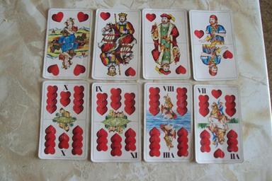 | Keywords: Červené v kartách.jpg cs Německé karty v červené barvě own Zákupák 2011-11-20 German decks Complete suits of playing cards laid out 7 of Hearts 8 of Hearts 9 of Hearts 10 of Hearts Unters of Hearts Obers of Hearts Kings of Hearts Deuces of Hearts |