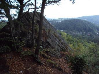 Keywords: Česká skála 3.JPG cs Pohled z vrcholové planinky České skály na sever směrem k Práchni own Zákupák 2012-09-15 Česká skála 629 m