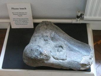 | Keywords: Cetiosaurus touch femur.jpg en An exhibit in Bedford Museum where members of the public are invited to touch this piece of cetiosaurus bone that was excavated in Newport Pagnell own Simon Speed 2010-09-14 Bedford Museum Bedford Photos by Simon Speed Cetiosaurus fossils Newport Pagnell |