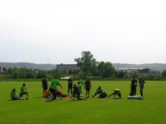 Keywords: Cf ass-étr 2.JPG fr Joueurs pros de l'ASSE en décrassage à l'Etrat Loire fin de saison 2008-09 own Julien Bertrand 2009-05-21 Centre de l'Étrat
