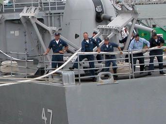 | Keywords: CG-47 Ticonderoga Mk 141 Launcher 2004-09-14.jpg ru Пусковая установка Mk 141 для акет «Га пун» на к ейсе е CG-47 «Тиконде ога» без контейне ов с акетами Fragment of US Navy photo http //www navy mil/view_image asp id 17662 Stacey Byington 2004-09-14 PD-USGov Missiles |