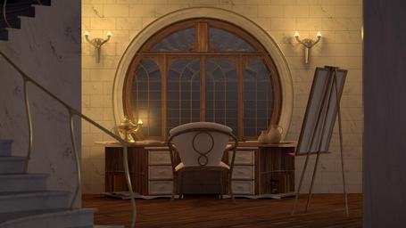 Keywords: cgi the interior of the art nouveau 3d imagining interion project round window