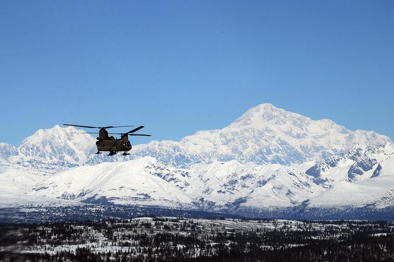 | Keywords: CH-47 Chinook 085 (8793394641).jpg A U S Army CH-47 Chinook helicopter assigned to the Alaska Aviation Task Force returns to Talkeetna Alaska May 20 2013 after transporting a team of eight Soldiers and one Army civilian to the National Park Service base camp on the Kahiltna Glacier to begin their attempt to climb Mount McKinley The helicopter crew members were assigned to Bravo Company 1st Battalion 52nd Aviation Regiment The climbing team members were with U S Army Alaska's Northern Warfare Training Center and the 1st Brigade Combat Team 25th Infantry Division DoD photo by John Pennell U S Army/Released https //www flickr com/photos/39955793 N07/8793394641/ 130520-A-SO352-085 2013-05-20 11 23 https //www flickr com/people/39955793 N07 U S Department of Defense Current Photos PD-USGov U S Department of Defense Current Photos https //flickr com/photos/39955793 N07/8793394641 2016-09-03 08 51 00 United States Government Work Denali Fort Wainwright National Park Service Northern Warfare Training Center United States Department of Defense CH-47 Chinook |