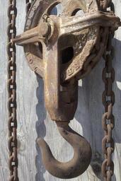 Keywords: chain hoist chain pulley hook wood rust antique