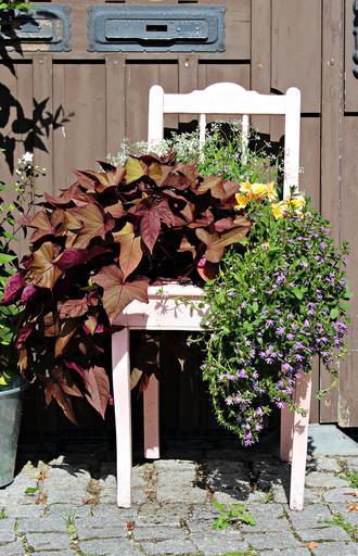 Keywords: chair deco plant decorative floral bloom ornament nature decoration eye catcher composition colorful