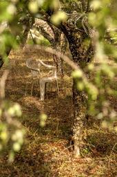 Keywords: chair garden nature single among trees resting