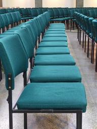 Keywords: chairs chair series rows of seats green seat hall