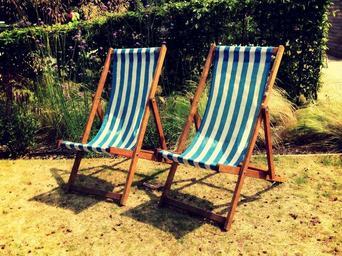 Keywords: chairs vacation holiday beach relaxation leisure stripes blue white